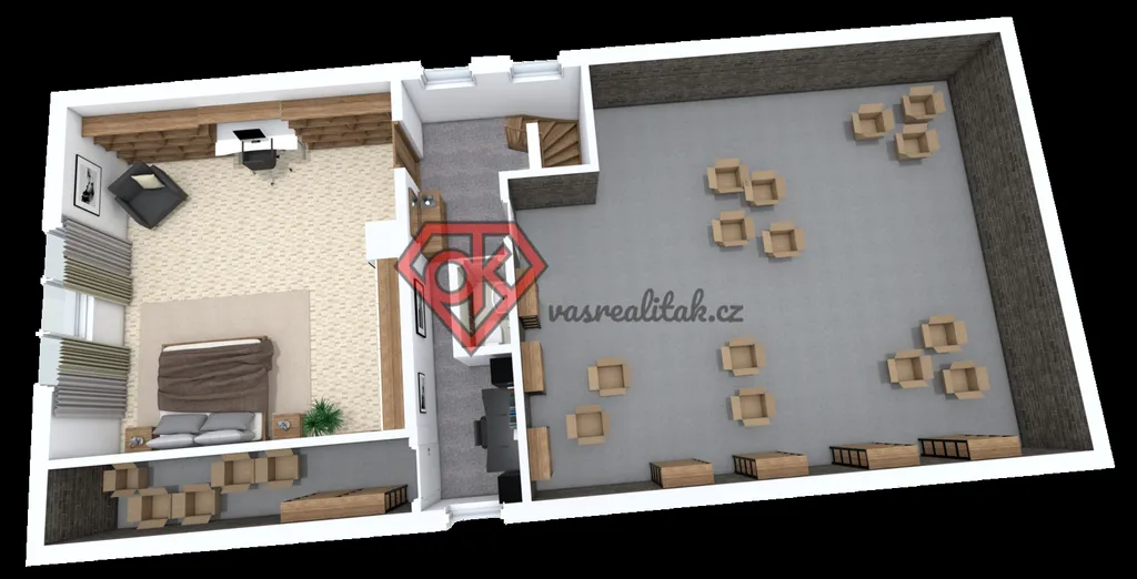 - půda s potenciálem k rozšíření o další obytné místnosti