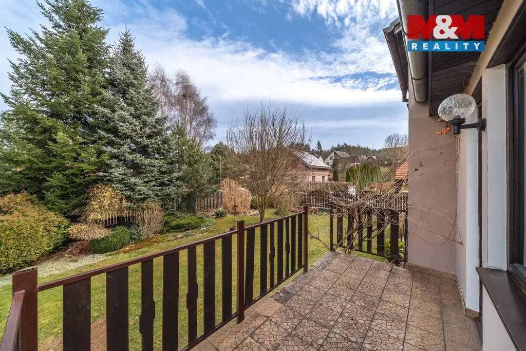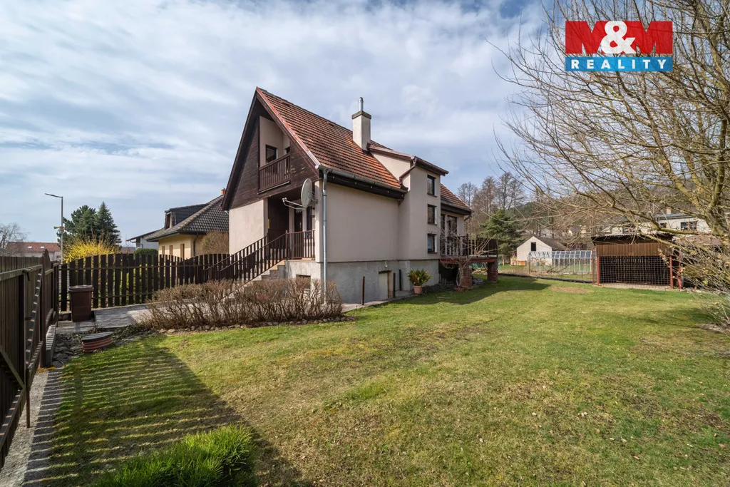 Nabízíme k prodeji rodinný dům o dispozici 4+1 s garáží a zahradou o vel. 662 m2 v obci Dobřív. Dům je rozdělen do tří podlaží. V přízemí se nachází kuchyně, obývací pokoj ze kterého je vstup na terasu a zahradu, dále ložnice, šatna, koupelna a samostatné WC. V patře jsou dva pokoje, jeden z nich disponuje balkonem, dále koupelna s WC. Suterén tvoří kotelna, garáž a sklepní prostory. Nemovitost tak nabízí komfortní rodinné bydlení s dostatkem prostoru. Do domu je zavedena veřejná kanalizace a vodovod. Vytápění je řešeno kotlem na pevná paliva, ohřev vody zajišťuje bojler. Dům je dřevěné konstrukce v udržovaném stavu.