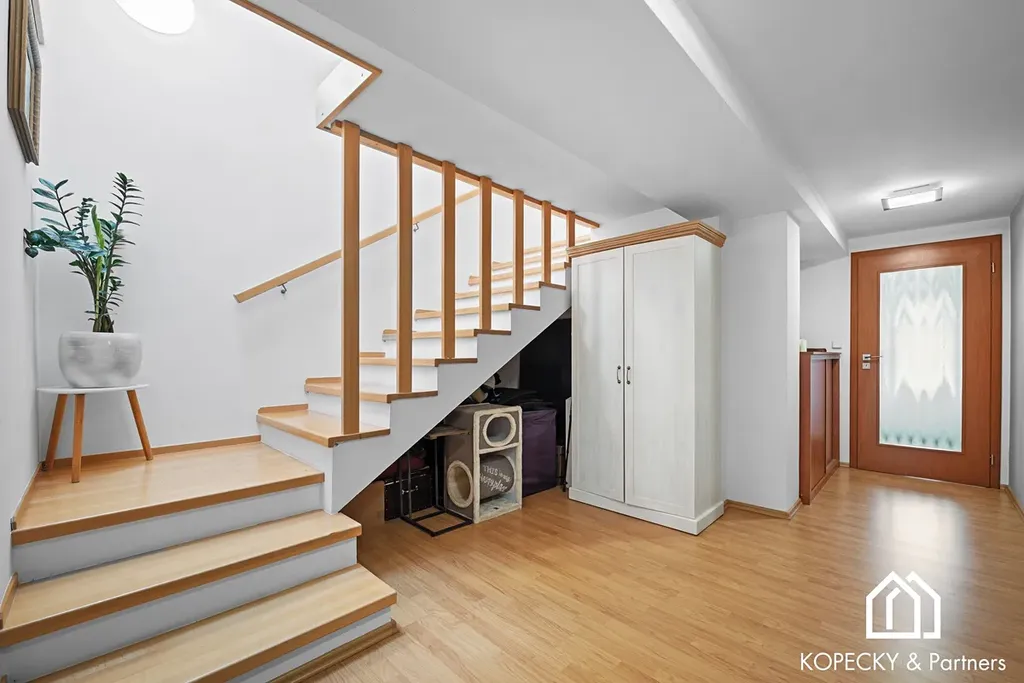 Dům nabízí celkovou užitnou plochu 150 m² včetně garáže. Praktická dispozice je ideální pro rodinné bydlení i pro náročnější klienty, kteří hledají komfort a funkční prostor bez kompromisů. Velkou výhodou je, že na každém podlaží se nachází koupelna, což výrazně zvyšuje pohodlí každodenního provozu. V obytných podlažích je instalováno podlahové vytápění a příjemnou atmosféru doplňují krbová kamna.