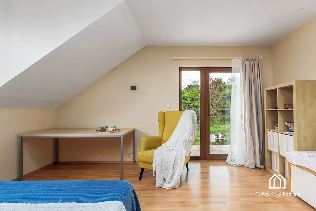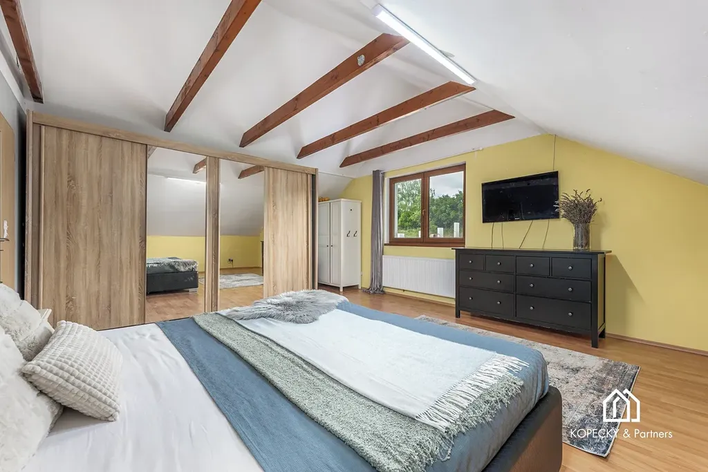První patro domu nabízí čtyři prostorné ložnice, které zajistí dostatek soukromí a prostoru celé rodině. Hlavní ložnice je velkoryse řešena pro maximální pohodlí, zbývající tři pokoje lze využít jako dětské pokoje, pokoje pro hosty či další pracovny. V horním patře najdete také komfortní koupelnu s vanou a sprchovým koutem, která vám zajistí příjemný relax.