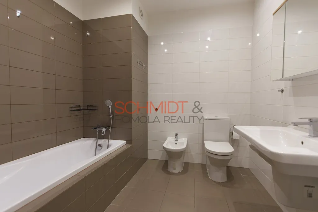 Byt disponuje dvěma koupelnami. První je přístupná z chodby a vybavena vanou pro pohodlné využití, druhá se sprchovým koutem se nachází hned vedle jednoho z pokojů.