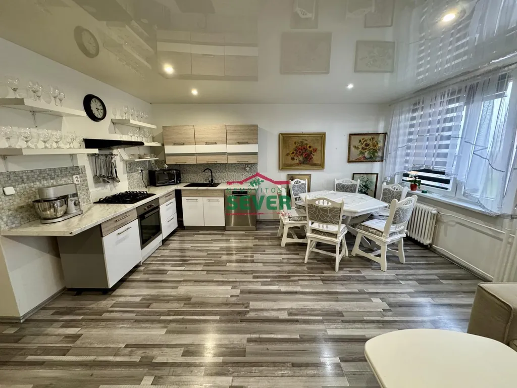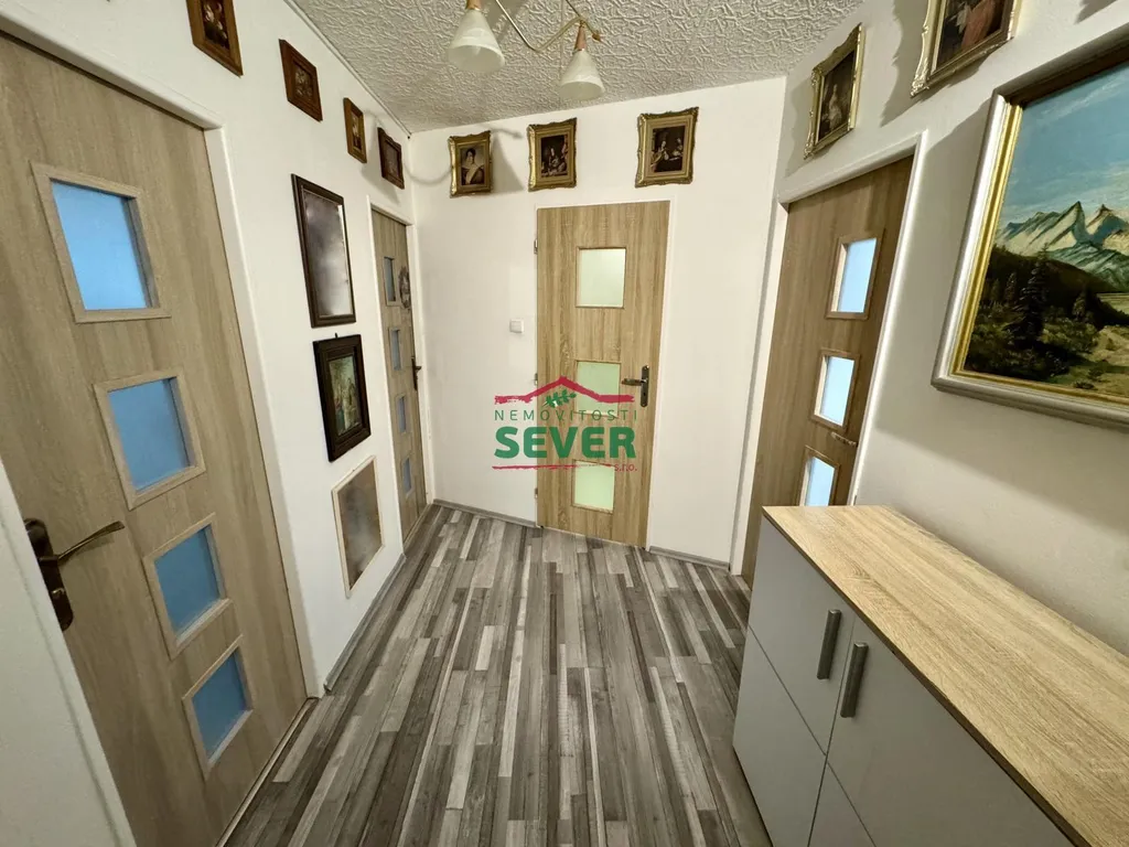 Nemovitosti SEVER vám zprostředkují koupi bytové jednotky s dispozicí 3+1 se zasklenou lodžií v osobním vlastnictví v Mostě v ul. Františka Malíka. Byt s výměrou 69 metrů čtverečních se nachází ve třetím nadzemním podlaží panelového domu s euro výtahem v klidné části města. Byt prošel rekonstrukcí a skládá se z předsíně, ložnice se vstupem do zasklené lodžie, pokoje, společně řešené koupelny s toaletou a obývacího pokoje propojeného s kuchyňskou částí. Rekonstrukce bytu zahrnuje elektroinstalaci v mědi, rozvody vody a odpadů, zděné jádro se sociálním zařízením v keramickém obkladu, kuchyňskou linku, položené linoleum v celém bytě, interiérové dveře, zatahovací rolety den/noc a snížený strop s bodovým osvětlením v obývacím pokoji a kuchyňské části. K bytu náleží komora v chodbě domu. Dům, ve kterém se byt nachází, prošel kompletní revitalizací. Veškerou občanskou vybavenost nalezneme v docházkové vzdálenosti do 10-ti minut od domu. V těsné blízkosti domu je dále spousta zeleně, dětské hřiště, rekreačně-sportovní areál Benedikt a sportovní centrum Tornádo Most. Centrum města je vzdálené 8 minut jízdy automobilem. V případě zájmu zajistíme optimální variantu financování na tuto nemovitost za zvýhodněných podmínek pro naše klienty.