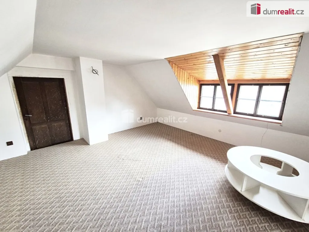 Přízemí domu o zastavěné ploše 174 m² disponuje prostornou místností s původním určením pro hostinec, doplněnou o dvě menší skladové místnosti. Dále zde naleznete kuchyň, dva obytné pokoje, koupelnu a dvě samostatné toalety. Samostatným vchodem v levé části přízemí se dostanete do útulného podkrovního bytu 1+1 s vlastní koupelnou a WC. Ideální pro samostatné bydlení člena rodiny nebo na pronájem. Část podkroví zůstává neupravena, nyní slouží jako úložný prostor. Do budoucna má potenciál pro rozšíření obytné části. Celý dům je pečlivě odizolován, vytápění je řešeno kombinací plynových topidel a elektrického topení, teplou vodu pak zajišťují spolehlivé elektrické průtokové ohřívače.