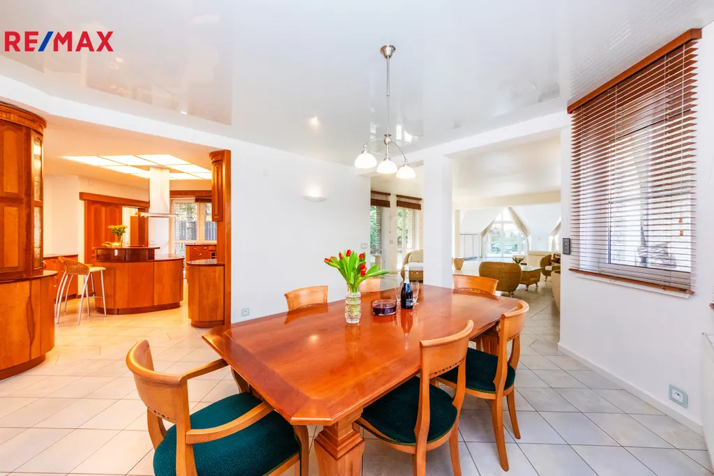 Vytápění objektu je řešeno tepelným čerpadlem, alternativně i plynovým kotlem. Obývací prostor je vybaven krbem, koupelny mají podlahové vytápění. Budova je díky kvalitnímu zateplení zařazena do energetické třídy B – velmi úsporná. Součástí nemovitosti je garáž pro dvě vozidla, další parkovací místa jsou možná před objektem. Bezpečnost domu zajišťuje alarm. Lokalita Praha – Benice nabízí klidné prostředí s dobrou dostupností do centra Prahy i na Pražský okruh a dálnici D1. V blízkosti restaurace, sportovní centrum Park Holiday se sportovními aktivitami, konferenčními, ubytovacími i stravovacími možnostmi. V dojezdové vzdálenosti nákupní a obchodní zóna v oblasti Čestlic. Pokud hledáte reprezentativní sídlo v klidné lokalitě s dobrou dopravní dostupností do centra i mimo metropoli, místo, kde Vás budou klienti rádi navštěvovat třeba u šálku dobré kávy, pak tato nemovitost bude splňovat Vaše očekávání. Ráda Vás objektem provedu Prodávající si vyhrazuje právo vybrat kupujícího na základě jím zvolených kritérií.