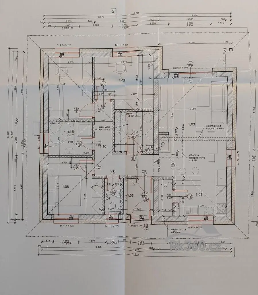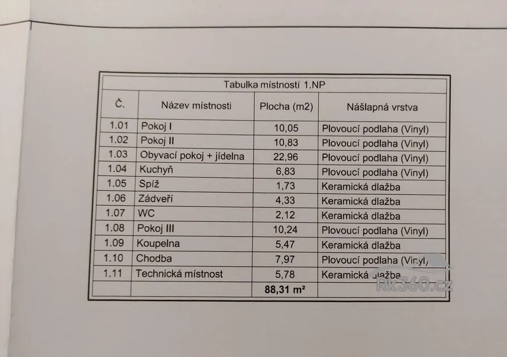 Celková plocha pozemku je 816 m2, s zastavěnou plochou 117 m2 a užitnou plochou domu 88,3 m2. Konstrukce domu je z ytongu o tloušťce 30 cm a je zateplena polystyrenem o tloušťce 15 cm, což zajišťuje skvělou tepelnou izolaci a nízké energetické nároky. Střecha je pokryta betonovými taškami, které zajišťují dlouhou životnost a minimální údržbu. Okna jsou vybavena trojskly Salamander, která poskytují výbornou izolaci proti hluku a tepelným ztrátám.