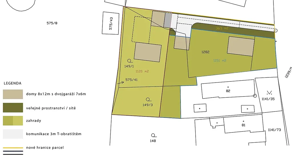 Pozemek je dle územního plánu určen k zastavění stavbou rodinného domu s maximálně dvěma nadzemními podlažími + podkroví. Vzhledem k jeho celkové ploše se nabízí i rozdělení na dvě stavební parcely, jehož možné řešení vám také nabízíme.