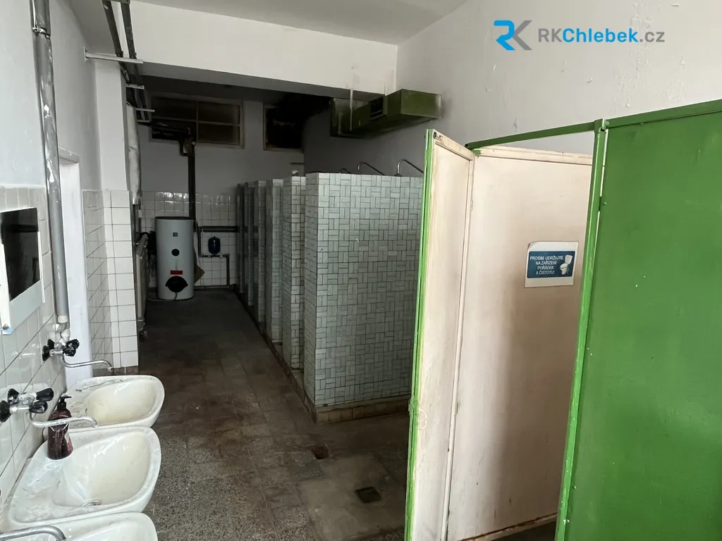 • administrativní a sociální zázemí (cca 109 m²): 2 kanceláře, šatny, sprchy, toalety