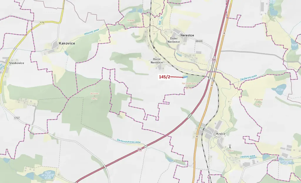 Ostatní plocha o výměře 2436 m2, parcelní číslo 145/2, podíl 1/1, katastrální území Horní Nerestce, obec Nerestce, obec s rozšířenou působností Písek, okres Písek, Jihočeský kraj.