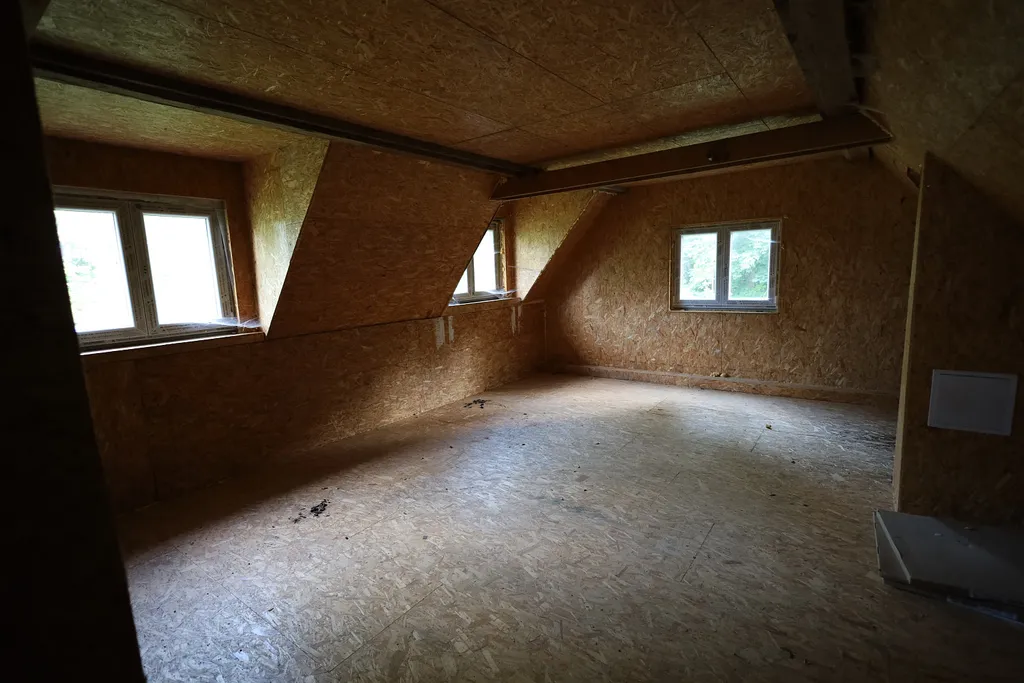 Podkroví má připravené zázemí pro vybudování dvou prostorných obytných místností a navíc disponuje cca 100 m² půdy, kterou lze využít dle vlastních potřeb – další pokoje, ateliér nebo úložné prostory.