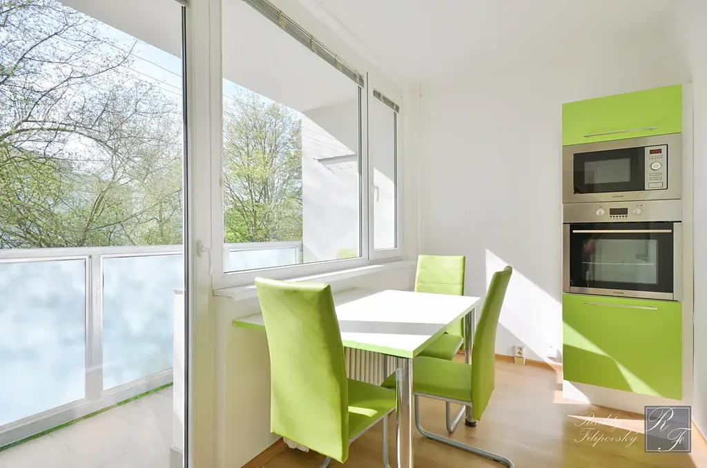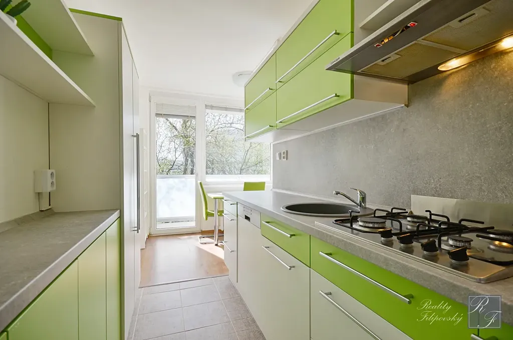 Bytová jednotka má zděné jádro, kuchyňskou linku vybavenou myčkou nádobí a velmi se mi líbí prostorná lodžie s výhledem do zeleně. Velkou výhodou je také šatna, i předsíň s vestavnou šatní skříní.