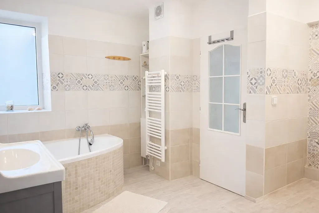V přízemí je instalováno podlahové topení, v patře jsou radiátory. Vytápění je zajištěno plynovým kondenzačním kotlem a krbem s výměníkem. Dům je napojen na všechny inženýrské sítě.