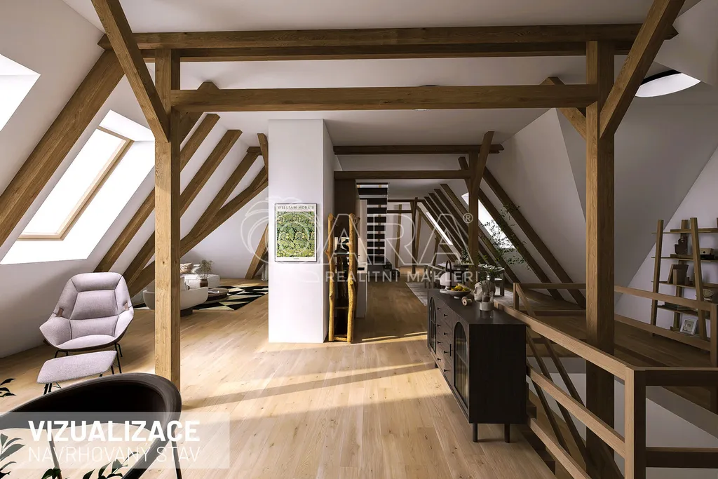 ✔ půdní prostor 265 m² – ideální pro luxusní mezonet, ateliér či další byty