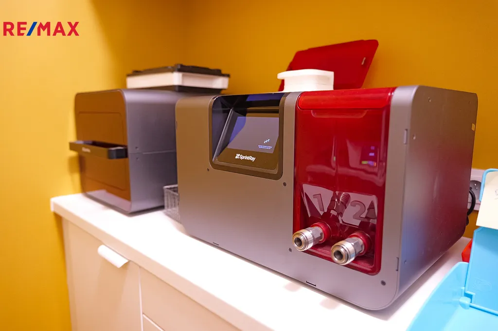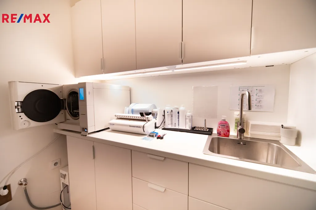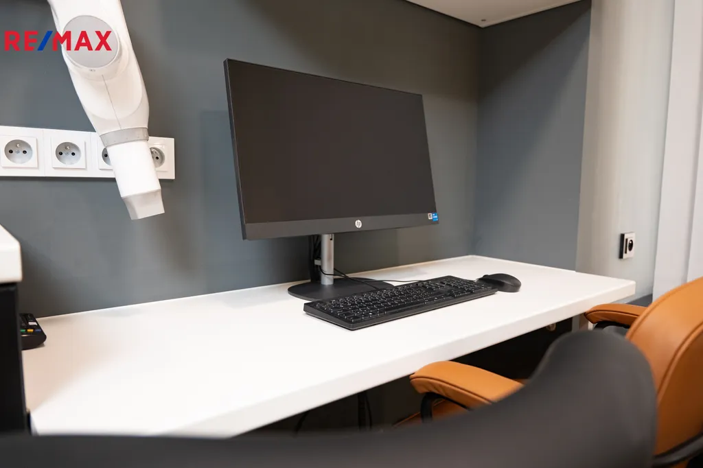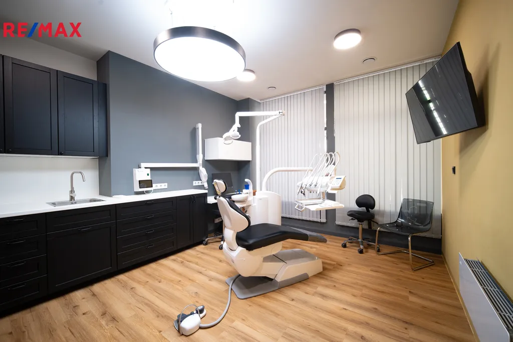 Ordinace je zcela nově zařízená a připravená k okamžitému provozu. K dispozici je kompletní zázemí umožňující pohodlný a profesionální výkon praxe. K dispozici je zde CT scan, 3D tisk, digital workflow, sterilizační místnosti, denní místnosti, vlastní laboratoře a společná recepce pro všechny ordinace.