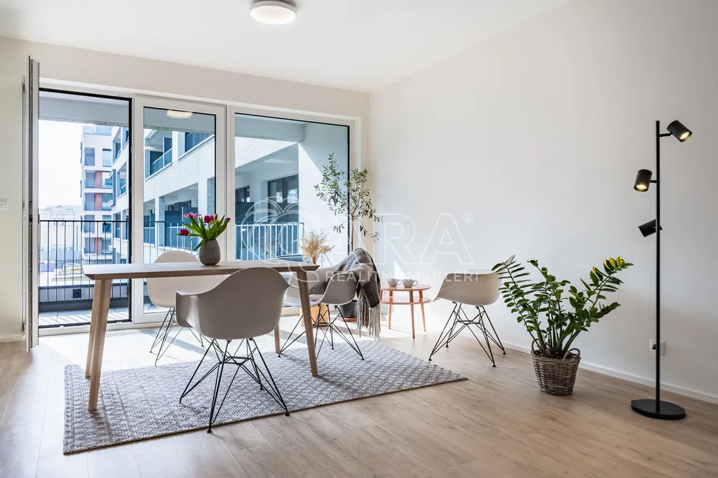 Byt s jižní orientací nabízí nespočet nadstandardních prvků: vinylové podlahy, velkoformátová dlažba, vytápění podlahovými konvektory, hliníková okna, systém řízeného větrání s rekuperací tepla, zabezpečovací systém Jablotron, kuchyňskou linku se spotřebiči na míru, magnetické zámky na dveřích, bezpečnostní dveře Next, energetický štítek “B”, zděnou sklepní kóji o rozměru 8,1 m2..
