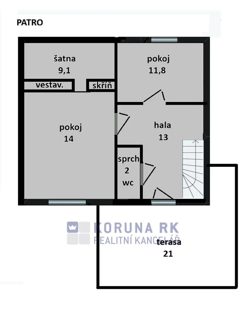 Pokoje jsou spíš menší, ale s velkými okny. Oslunění vytváří v domě dobrou atmosféru.