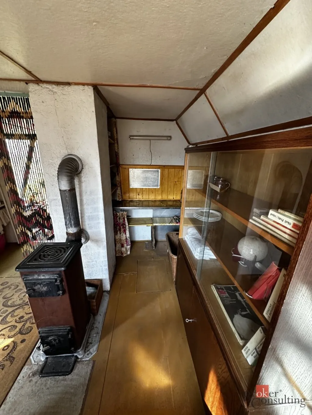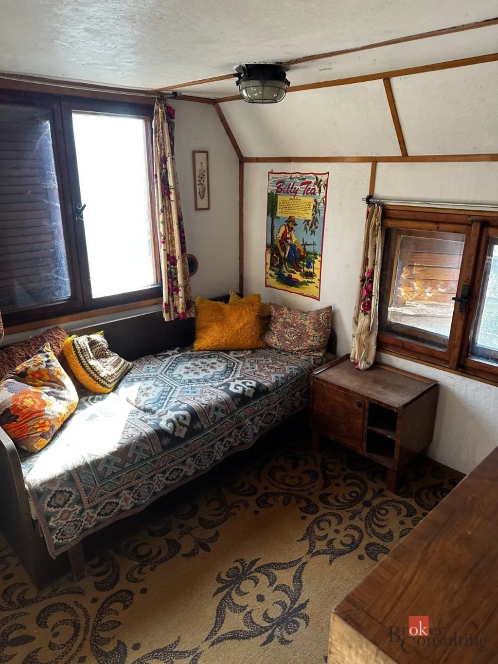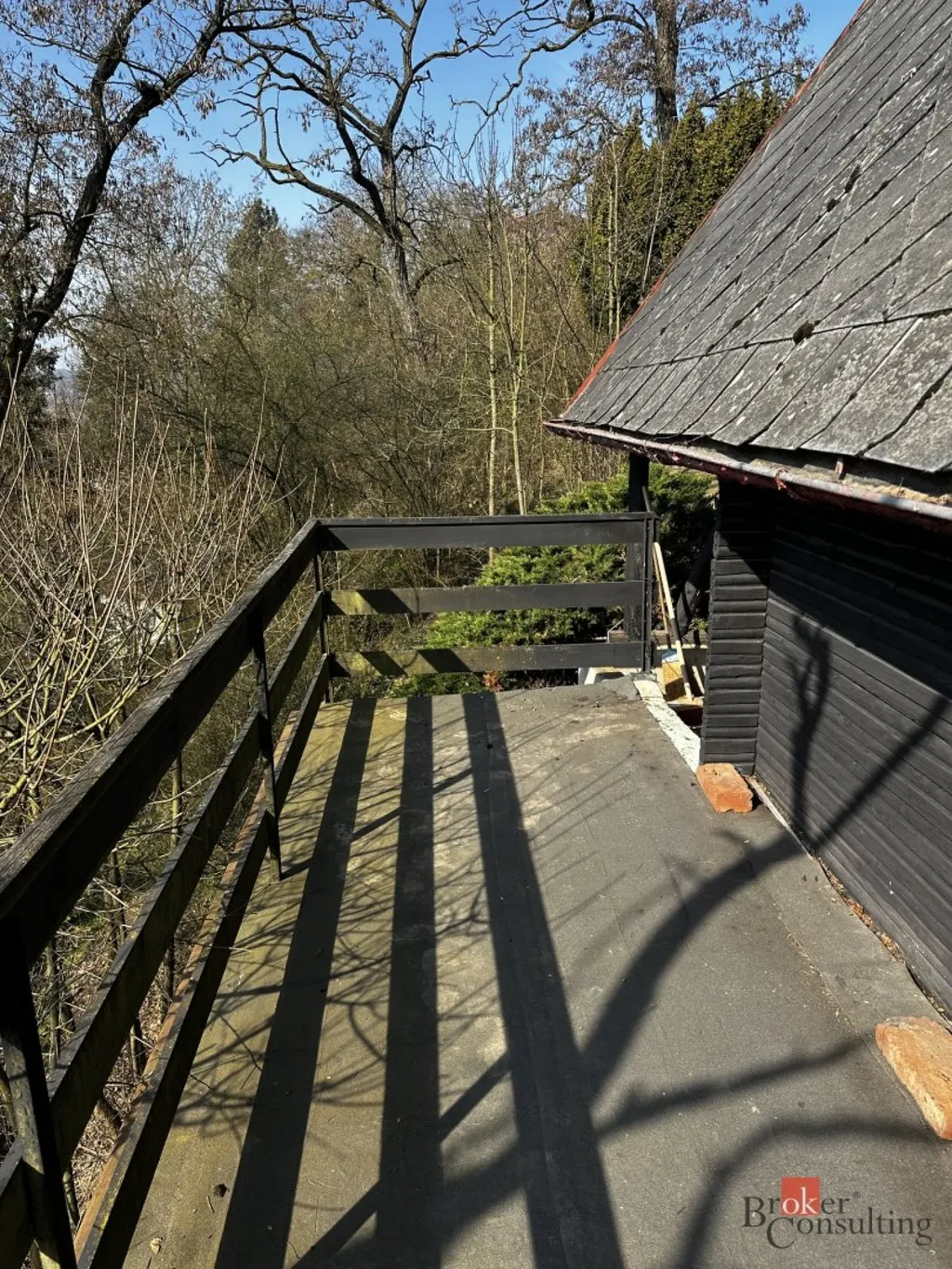 K prodeji nabízíme dřevěnou rekreační chatu ve svahu v Černošicích, ukrytou v zeleni, s výhledem na řeku Berounku. Užitná plocha dle katastru činí 41 m², plocha zahrady 334 m².