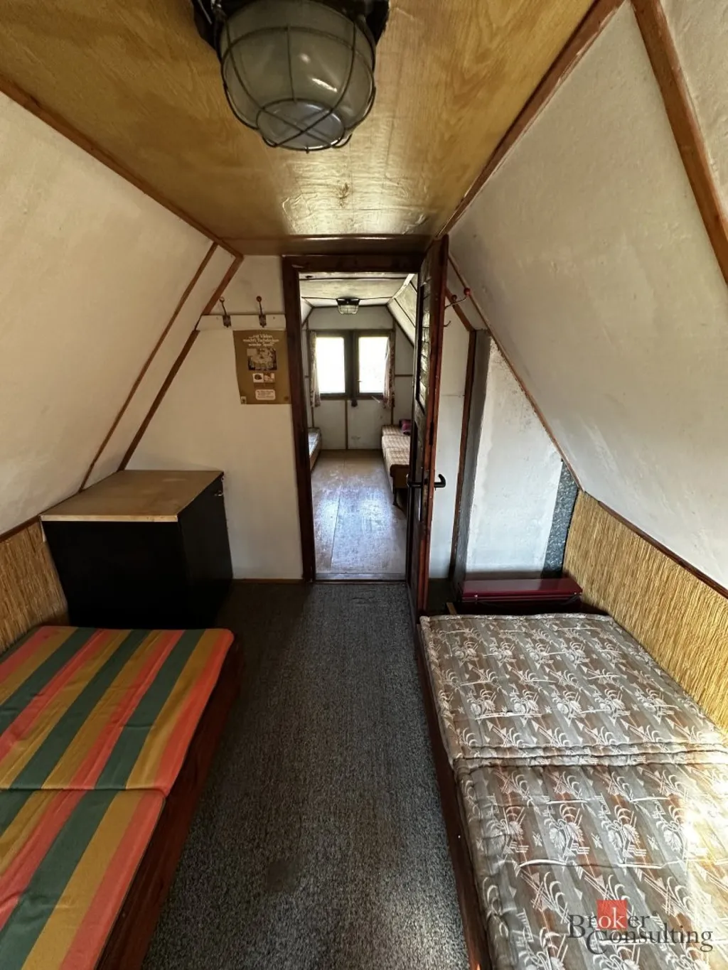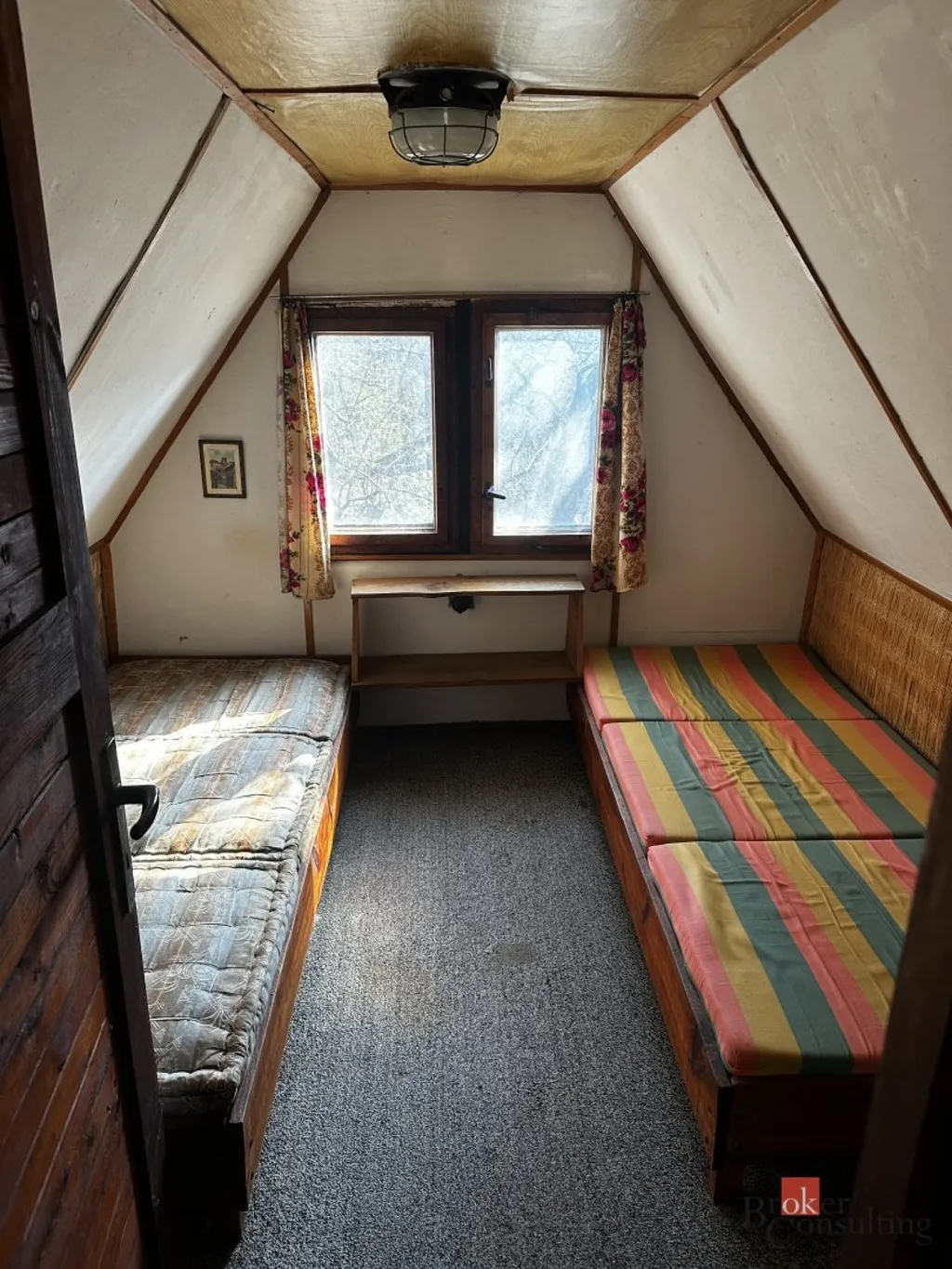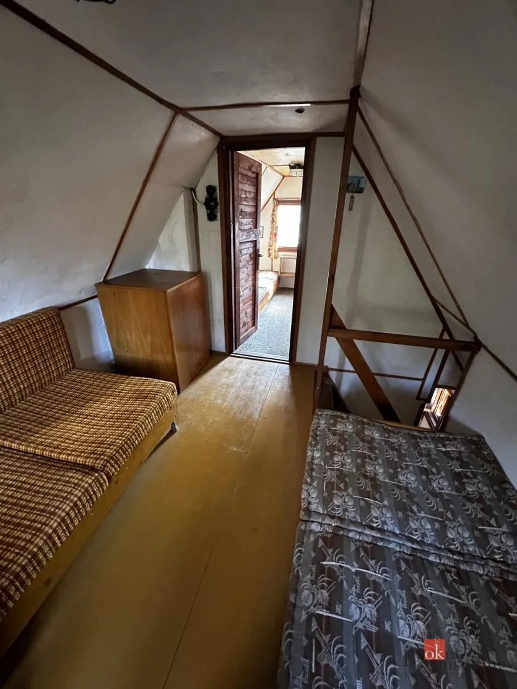 Chata je přízemní a má podkroví se dvěma ložnicemi.