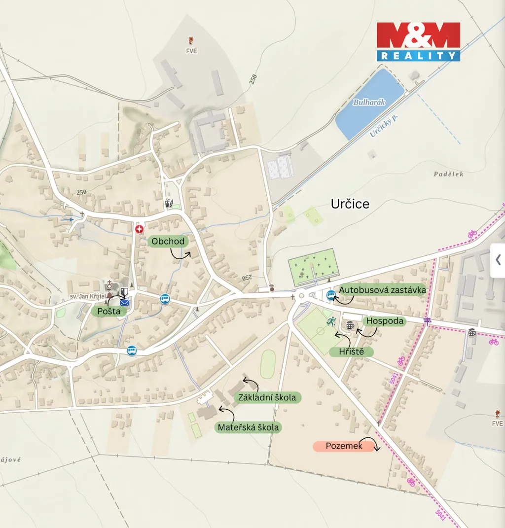Nabízíme k prodeji pozemek v katastrálním území Určice o celkové výměře 1 938 m². Rovinatý pozemek se nachází na okraji obce v klidné lokalitě a dle územního plánu je určen k výstavbě rodinného domu nebo pro klidné venkovské bydlení. Inženýrské sítě jsou na hranici pozemku – elektřina a kanalizace, vodovod je přes přilehlou komunikaci. Velkorysá výměra nabízí dostatek prostoru pro dům, zahradu i soukromí. V obci Určice je k dispozici lékař, knihovna, mateřská a základní škola, dětská skupina, pošta, sportovní areál, Sokolovna a hřiště. Určice leží cca 8 minut od Prostějova a přibližně 25 minut od Olomouce. Pro více informací či sjednání prohlídky nás neváhejte kontaktovat.