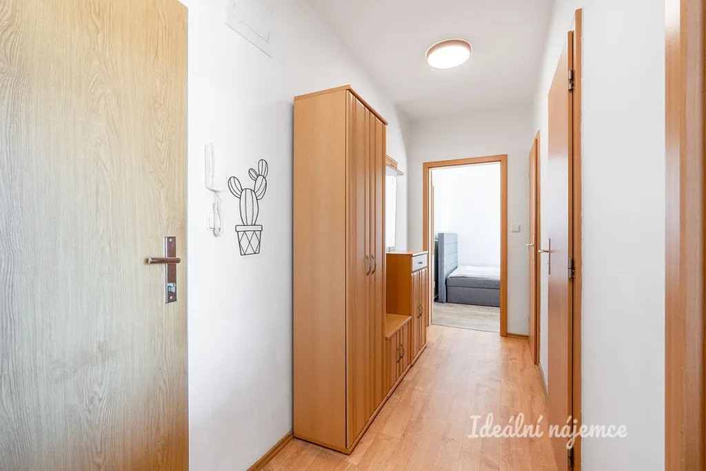 Dispozičně byt nabízí prostornou předsíň , komoru s policemi i plně vybavenou koupelnu včetně pračky. Hlavní dominantou je obývací pokoj s kuchyňskou linkou ve které jsou všechny potřebné spotřebiče. Obývací pokoj je spojen s prostorným balkonem, který nabízí nádherný výhled třeba i k večernímu posezení. Druhou místností je pokoj, který nabízí úložné prostory v podobě skříní a police.