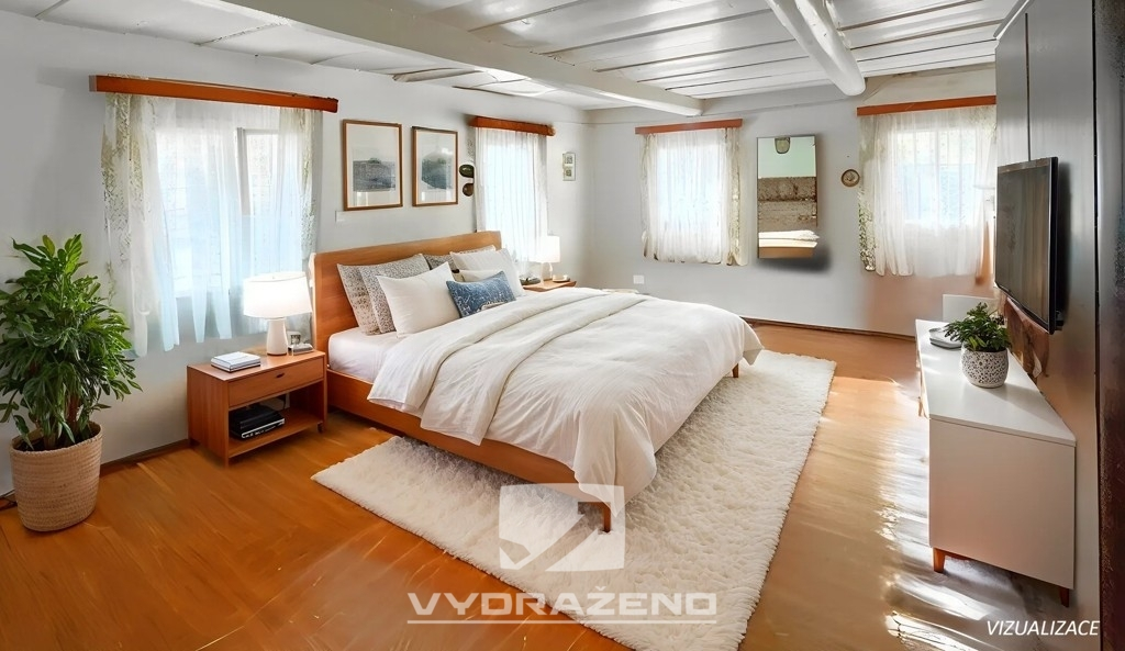 V prvním nadzemním podlaží jsou dvě obytné místnosti. Ve druhém nadzemním podlaží se nacházejí čtyři ložnice, co nabízí dostatek prostoru i pro větší rodinu nebo ubytování návštěvy či hostů, pokud by se někdo rozhodl nemovitost předělat a pojmout jako malý penzion.
