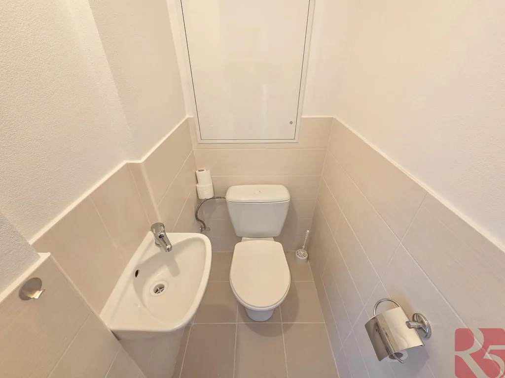 Nová koupelna s vanou, připojení na pračku. Toaleta samostatně.