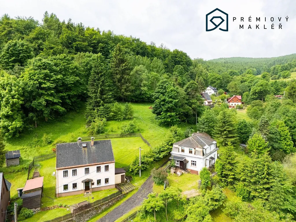 k prodeji nabízím dva sousedící pozemky o celkové výměře 729 m² v malebné obci Vykmanov (část obce Perštejn) v Krušných Horách