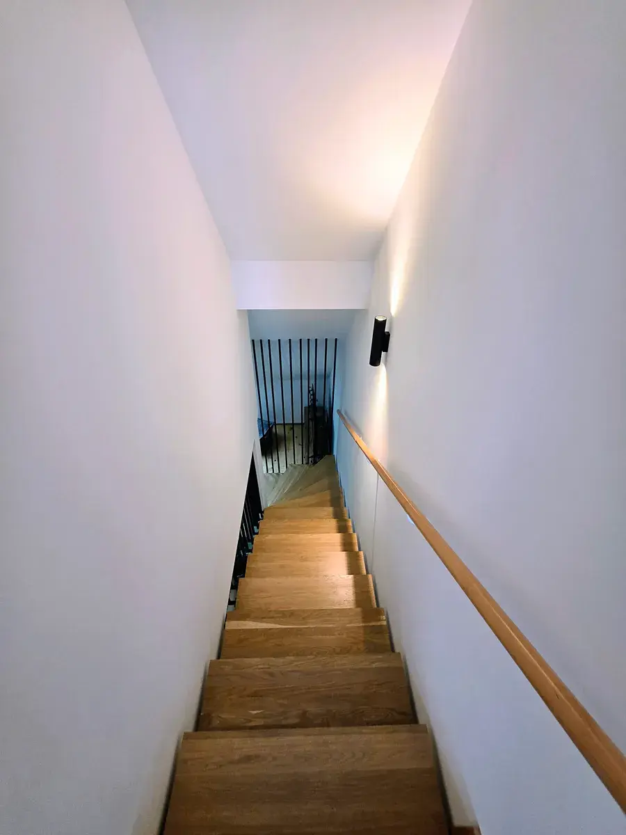 Vysoký standard provedení podtrhují kvalitní dřevěné podlahy v kombinaci s velkoformátovou dlažbou. Maximální pohodlí zajišťuje klimatizace ve všech místnostech, která umožňuje příjemné klima během celého roku.