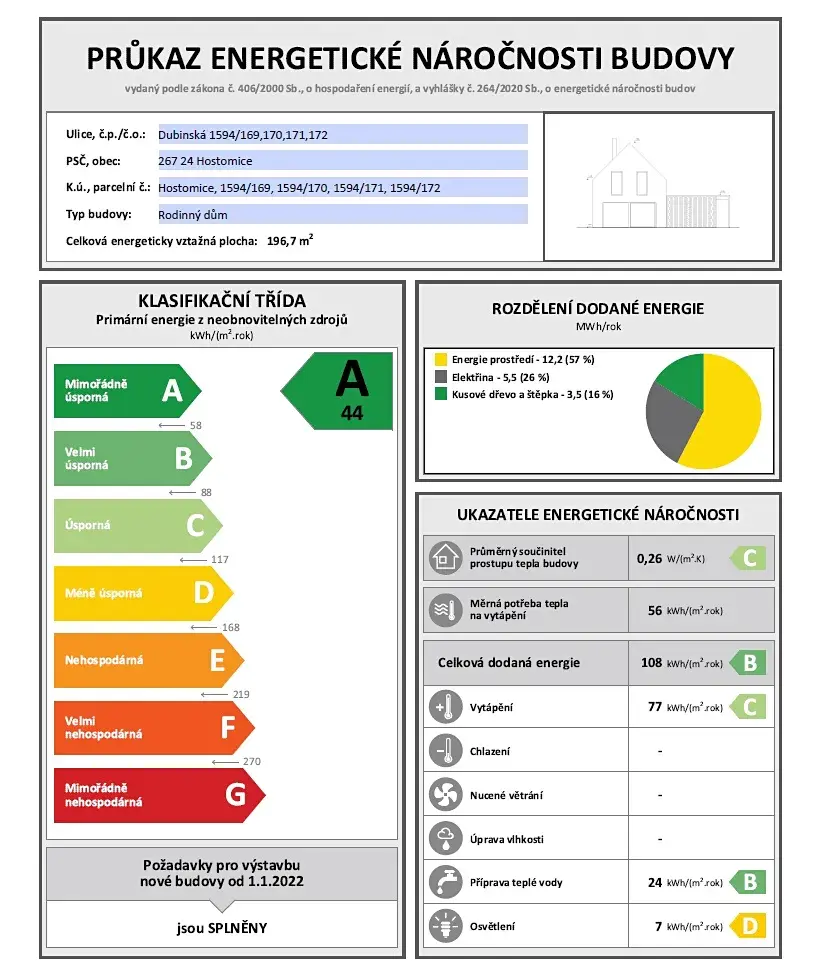 Nabízíme vám výjimečnou novostavbu rodinného domu v klidné části Hostomic – v lokalitě Dubinská, na kraji obce a zároveň v těsném kontaktu s přírodou. Dům je součástí projektu čtyř nízkoenergetických domů, který realizujeme jako místní rodinná firma vlastními silami. Dům jsme stavěli s vědomím, že budeme sousedé, a proto jsme si nemohli dovolit žádné kompromisy v kvalitě. Na rozdíl od běžných developerských projektů pro nás vztah se zákazníkem nekončí podpisem smlouvy.