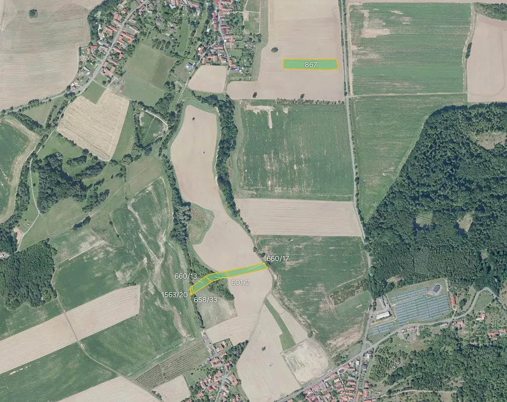 -> pozemky v rovinatém terénu, vhodné pro efektivní obhospodařování