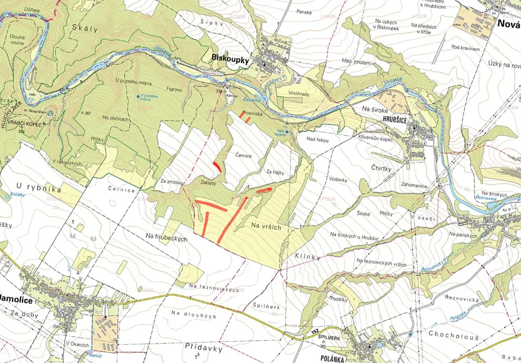 Pozemky se nacházejí v zemědělské oblasti u řeky Jihava.