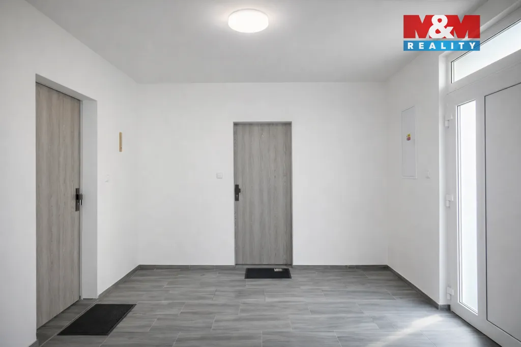 Pronájem zajímavého bytu 2kk, 50 m², I. / II. NP, sklepní místnost 17 m2, venkovní pergola. Ke každému bytu náleží 2 parkovací místa s vyhrazeným stáním á 250 Kč. Pergola je zastřešená, pro posezení je připraven dřevěný stůl s lavicemi, grilovačka možná - venkovní sociálka a umývadlo k dispozici. Vše najdeme ve dvoře dvoupatrového domu, kde máme celý pozemek oplocený a uzavřený vjezdovou bránou - ve výstavbě. K pronájmu bude připravena také garáž pro 1 vozidlo, výběr nájemce předpokládáme formou aukce. V domě celkem 4 bytové jednotky, k pronájmu zbývá již jen 1x na patře a 1x v I. NP. Vytápění domu je zajištěno centrálním plynovým kotlem v suterénu. Ohřev vody el. bojlerem, který je vždy součástí koupelny, zde máme také místo pro pračku a krásný praktický uzavírací sprchový kout. Kuchyňská část dále připravena pro instalaci myčky i lednice. Společenská místnost navržena s dostatečným prostorem pro umístění sedačky, TV sestavy. Kuchyně je součástí pronájmu, jiný inventář ve vizualizaci