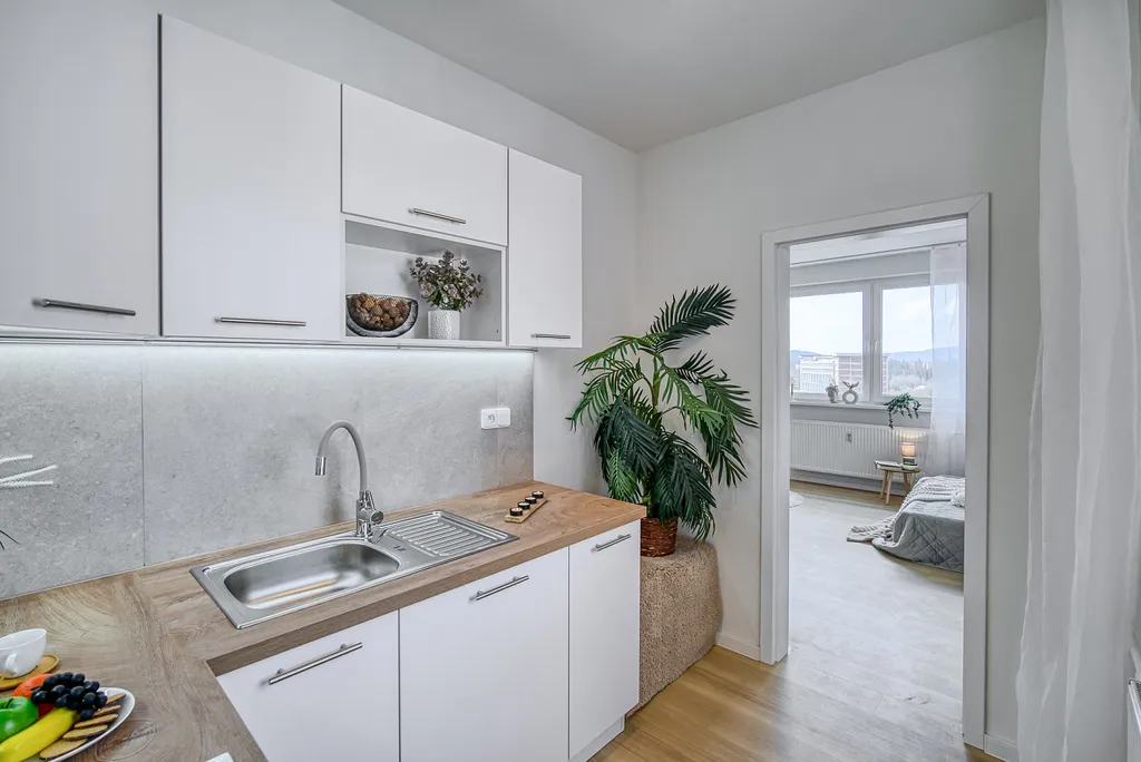 Nabízíme k pronájmu krásný byt 1+1, po kompletní rekonstrukci. Byt se nachází v 7. nadzemním podlaží (6. patře) panelového domu s výtahem a disponuje novou kuchyňskou linkou se sklokeramickou varnou deskou, elektrickou pečící troubou a digestoří. V koupelně se nachází sprchový kout, umyvadlo se skříňkou, koupelnová skříňka se zrcadlem a toaleta. Součástí pronájmu je i sklepní kóje. Byt není vybaven nábytkem. Nájemné zde činí 11 000,- Kč, záloha na služby 3 000,- Kč pro 1 osobu + 500,- Kč každá další osoba. Vratná kauce je 20 000,- Kč. Při rezervaci se platí provize realitní kanceláři ve výši 13 500,- Kč. Elektřina se přepisuje na nájemce. Byt je volný ihned. V případě zájmu o prohlídku či více informací neváhejte kontaktovat makléře.