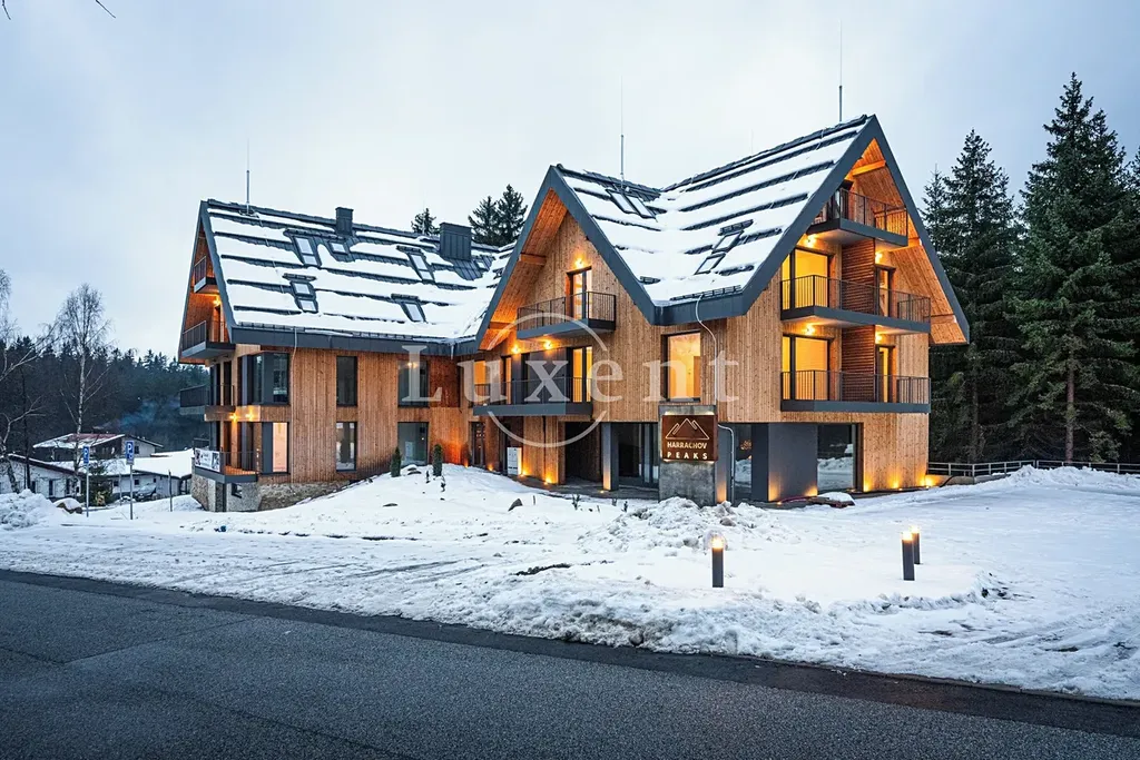 V luxusním projektu se nachází 16 apartmánů s výhledem na sjezdovky Černé hory, wellness se saunou a vířivkou a plně vybavené fitness.
