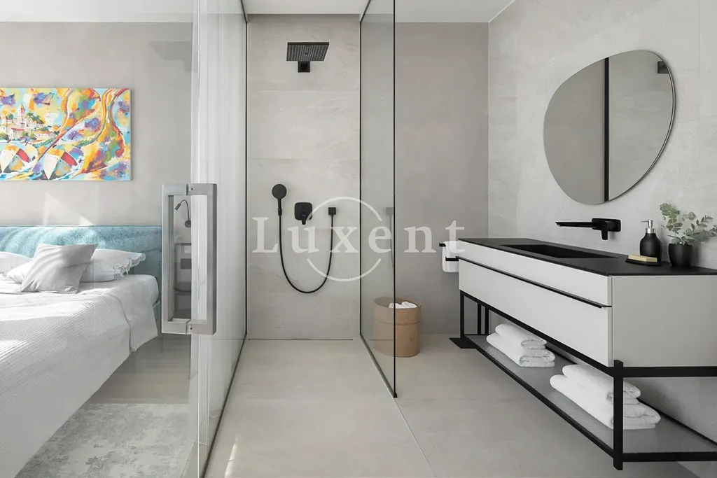 Ve druhém patře jsou další čtyři luxusní ložnice s koupelnami. Hlavní ložnice vyniká samostatně stojící vanou a soukromou terasou s úchvatným výhledem na moře.