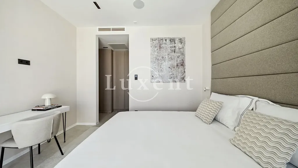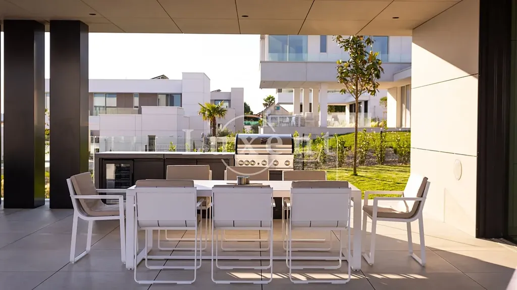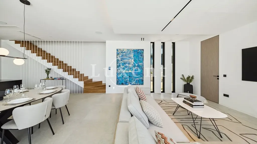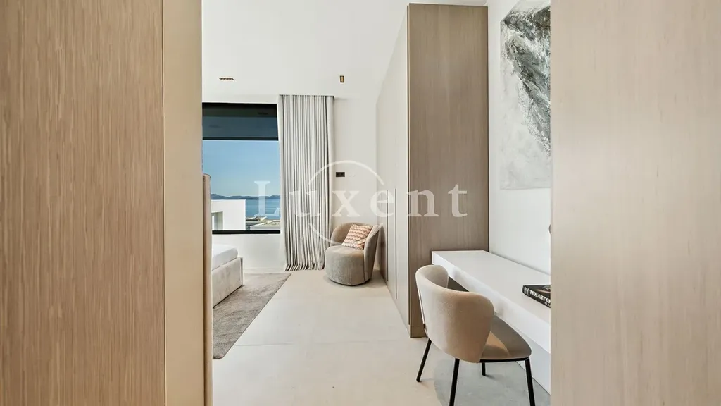 Obývací prostor s velkorysými okny od podlahy ke stropu plynule navazuje na terasu s letní kuchyní a soukromým vyhřívaným bazénem. Vila disponuje několika ložnicemi, každá s vlastní koupelnou a vestavěnými skříněmi. Samozřejmostí jsou dvě parkovací místa na pozemku.