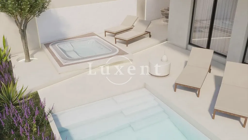 Vila se rozkládá na třech podlažích. V přízemí se nachází prostorný obývací pokoj s otevřeným konceptem kuchyně a jídelny, který je propojen s venkovní terasou. Na terase je bazén, gril a rodinná jídelna, ideální pro venkovní aktivity a relaxaci. První patro je tvořeno třemi pokoji, každý s vlastním sociálním zařízením a přístupem na terasu, která nabízí otevřený výhled na moře. Ve druhém patře se nachází další pokoj s koupelnou, a také velký prostor s posilovnou a kulečníkem. Tento prostor je propojen s terasou, která poskytuje nádherný panoramatický výhled.