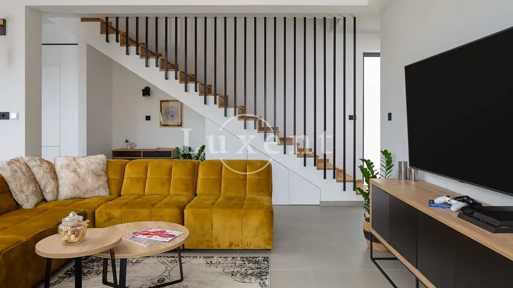 Nabízíme k prodeji jedinečnou vilu situovanou v klidné rezidenční oblasti, která nabízí dokonalou harmonii mezi luxusem, komfortem a soukromím. Nemovitost je obklopena zelení na pozemku o rozloze 710 m2 a disponuje obytnou plochou 130 m2. Díky své poloze nabízí nádherný výhled na moře z většiny místností a venkovních prostor.