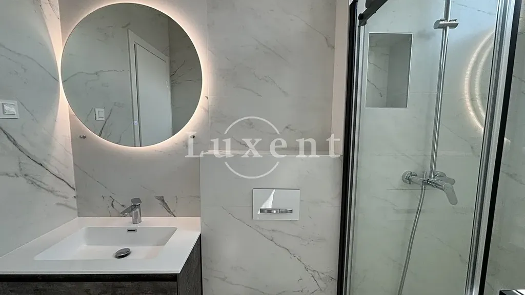 Nově postavená dvojvila s vlastním bazénem na prodej se nachází v klidné lokalitě nedaleko chorvatského Trogiru, pouhých 80 m od moře. Na pozemku o rozloze 565 m2 se nachází třípodlažní vila o celkové obytné ploše 200 m2.