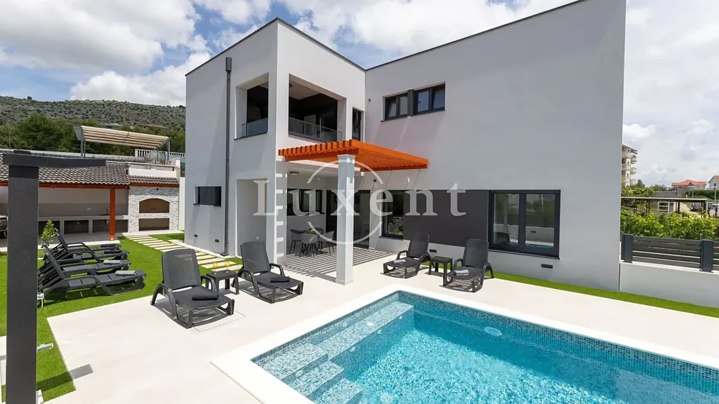 Nabízíme k prodeji elegantní vilu ve vyhledávané lokalitě s výhledem na moře, nedaleko historického města Trogir. Tato výjimečná nemovitost je postavena z vysoce kvalitních materiálů s důrazem na detail, komfort a dlouhodobou udržitelnost.