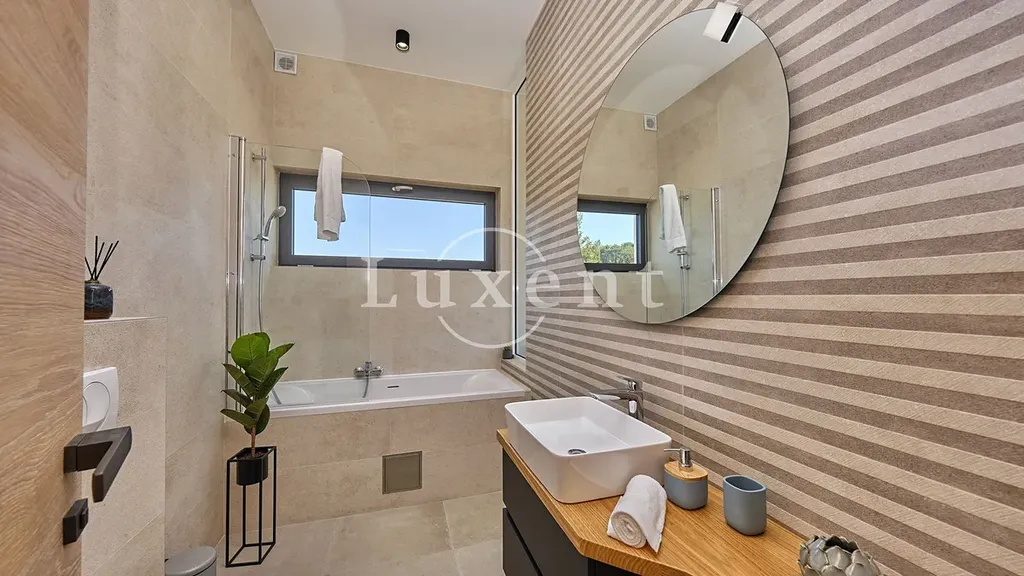 Interiér tvoří pečlivě vybrané materiály a nábytek na míru, což celému prostoru dodává výjimečný styl a harmonii. Vila představuje ideální investici pro rodinné bydlení i lukrativní turistické pronájmy.