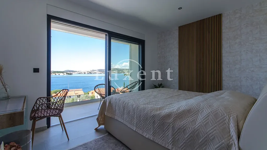 V horním patře se nachází hlavní vstup do domu, přístupný přímo z parkoviště nebo přes garáž propojenou s interiérem. Najdete zde tři ložnice – hlavní ložnice má vlastní koupelnu a přímý vstup na soukromý balkon, který sdílí s další ložnicí. Zbývající dvě ložnice využívají společnou koupelnu. Balkony poskytují úchvatný výhled na moře, město Rogoznica i západ slunce, což dotváří jedinečnou atmosféru tohoto domu.
