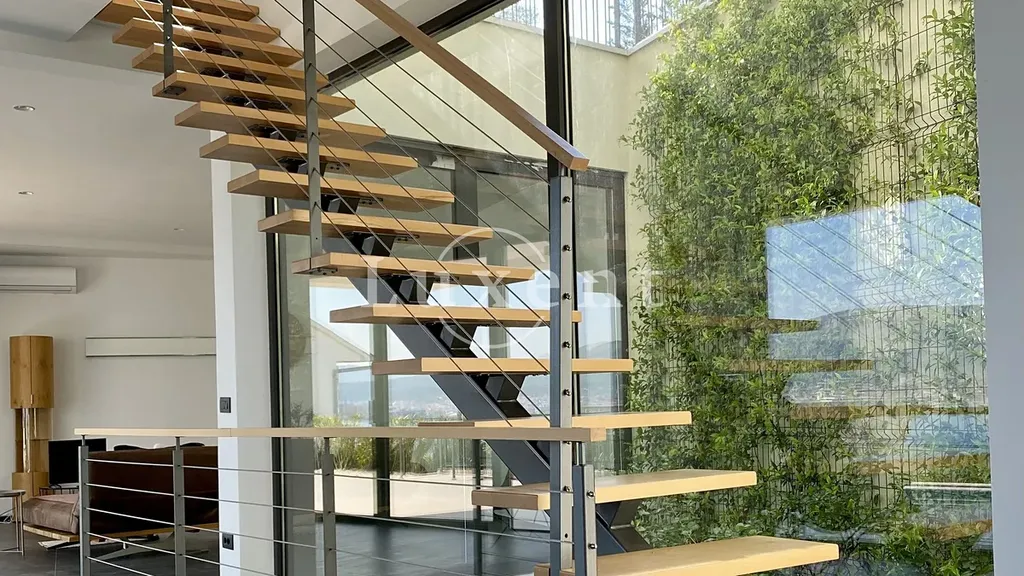 Vila disponuje obytnou plochou 326 m2 a je situována na pozemku o velikosti 728 m2. Rozkládá se na třech úrovních a je navržena s důrazem na pohodlí, funkčnost a estetiku. V hlavním obytném patře se nachází otevřený prostor o rozloze 75 m2, který spojuje obývací pokoj, kuchyni a jídelní část. Velká posuvná skleněná stěna vede na prostornou terasu s výhledem na moře, kde se nachází osvětlený vyhřívaný bazén, sluneční terasa a venkovní posezení. Díky hliníkovým oknům od podlahy ke stropu je výhled na moře zachován i zevnitř, a celý prostor působí vzdušně a světle.
