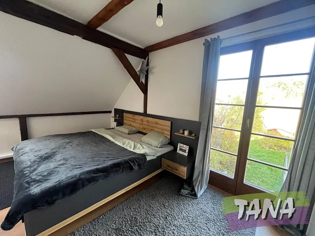 Mezonetový byt o dispozici 3+kk nacházející se ve stylově zrenovovaném venkovském stavení v malebné krajině Podještědí, v obci Janův Důl. U domu se nachází společná zahrada s posezením a krytým parkovacím stáním s vyhrazeným parkovacím místem a dále přímo navazující vlastní zahrada o výměře 225m2. Dispozice bytu: vstup, prostorná předsíň, ložnice, koupelna s rohovou vanou, sprchovým koutem a WC, schodiště do druhého podlaží, kde se nachází obývací pokoj s jídelním a kuchyňským koutem a pokoj. Byt je vytápěn multisplitovou klimatizací s jednotkou jednotlivých prostorech bytu. Výměra bytu: 95m2.