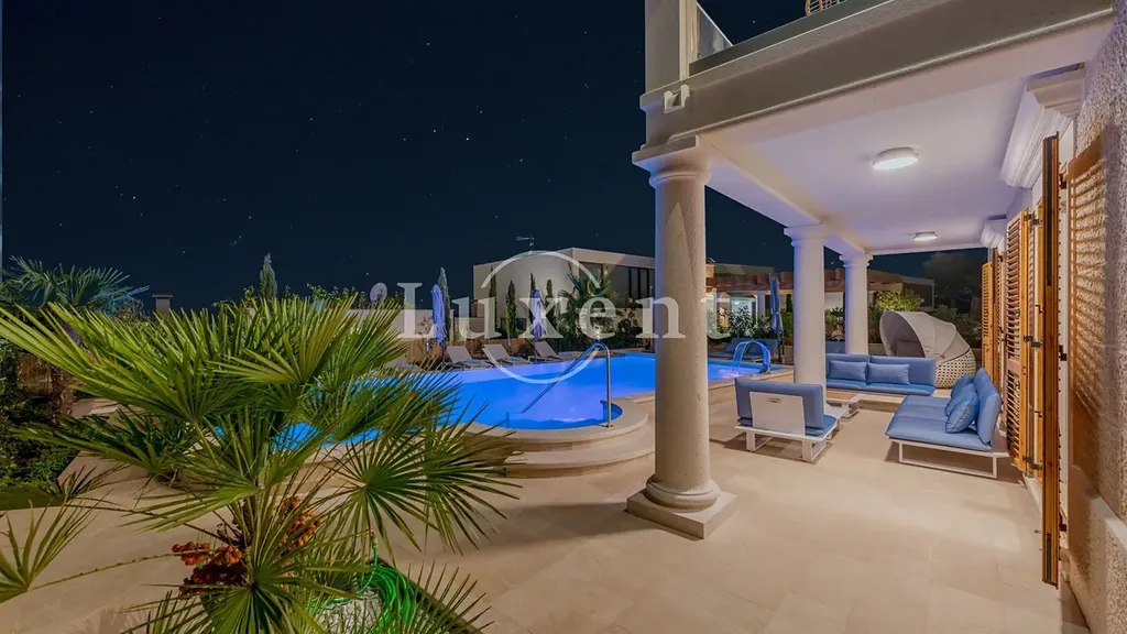 Na prodej je nově postavená kamenná vila s přepadovým bazénem, která se nachází jen 50 metrů od moře v rezidenční části Rogoznice, obklopena luxusními nově postavenými vilami. Celá vnější fasáda vily je vyrobena z 3 druhů ručně tesaného kamene, díla nejlepších kameníků z ostrova Brač, což vile dodává jedinečný a tradiční vzhled.