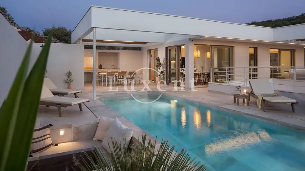 Nabízíme k prodeji nově postavenou moderní vilu situovanou v klidné a malebné zátoce nedaleko města Rogoznica, pouhých 100 metrů od moře. Nemovitost se nachází na pozemku o celkové výměře 727 m2, v mírném svahu s výhledem na moře, obklopena upravenou zahradou plnou středomořské zeleně a relaxačních zón.