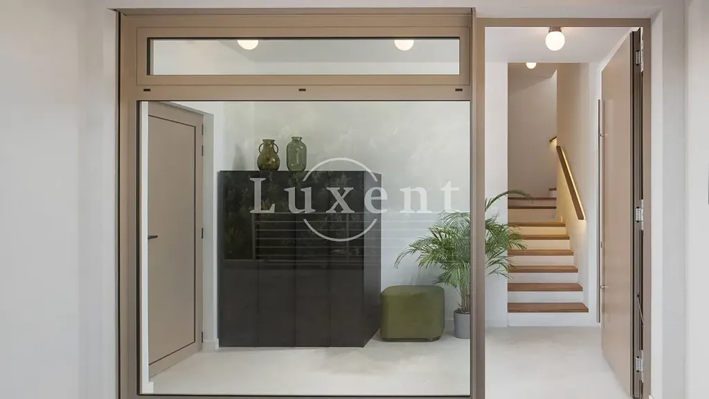 Tato elegantní třípodlažní vila nabízí užitnou plochu rozdělenou mezi přízemí a dvě obytná patra, která jsou propojena vnitřním schodištěm. Interiéry jsou světlé, vzdušné a vybaveny designovým nábytkem na míru, splňujícím vysoké standardy komfortu a estetiky.