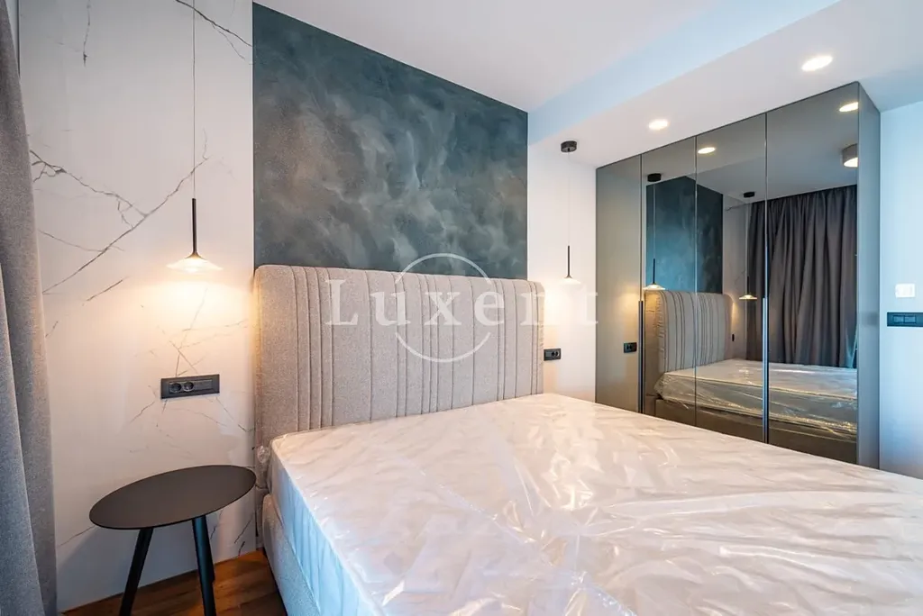 Apartmán je vybaven vysokým standardem, včetně chytré domácnosti. V každé místnosti je podlahové topení, klimatizace a elektricky ovládané rolety. K apartmánu náleží tři venkovní parkovací stání pod přístřeškem.