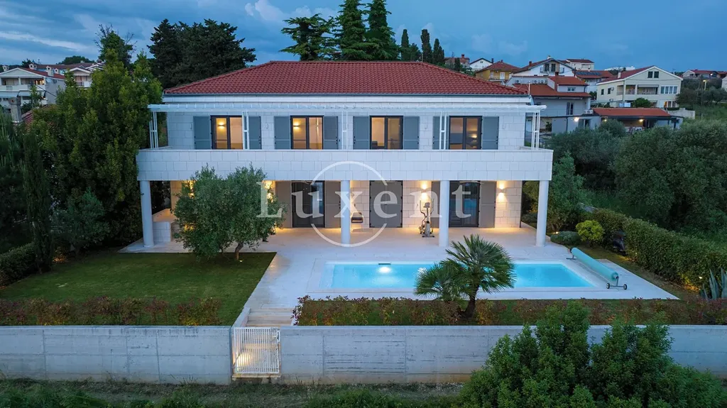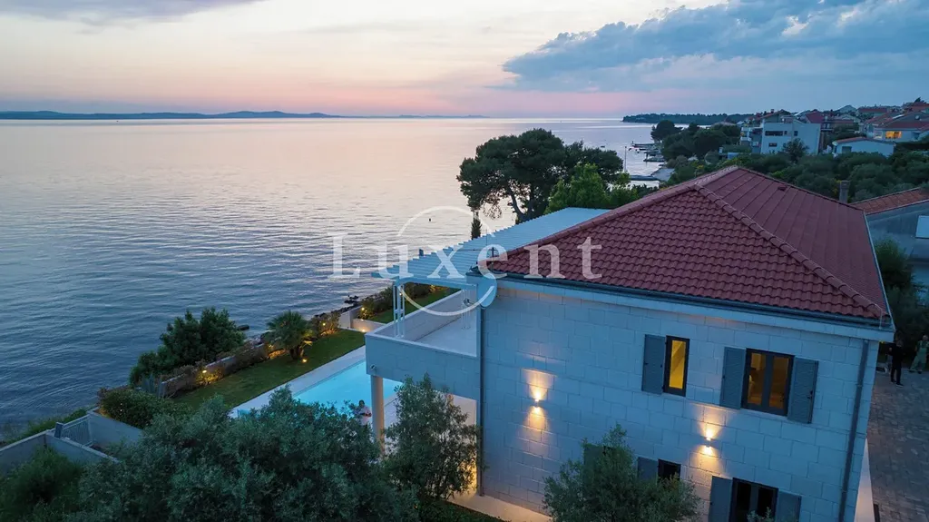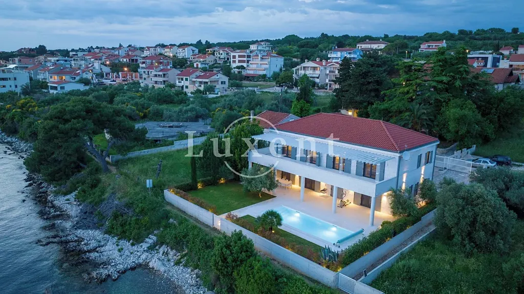 Nabízíme na prodej atraktivní kamennou vilu o velikosti 419 m2, rozdělenou do dvou podlaží, která je situovaná v první řadě u moře v jedné z nejprestižnějších lokalit centrálního Jadranu, nedaleko Zadaru. Vila je postavena na pozemku o rozloze 814 m2 a nabízí kombinaci decentního luxusu, absolutního soukromí a moderních technologií v harmonii s autentickým středomořským prostředím.