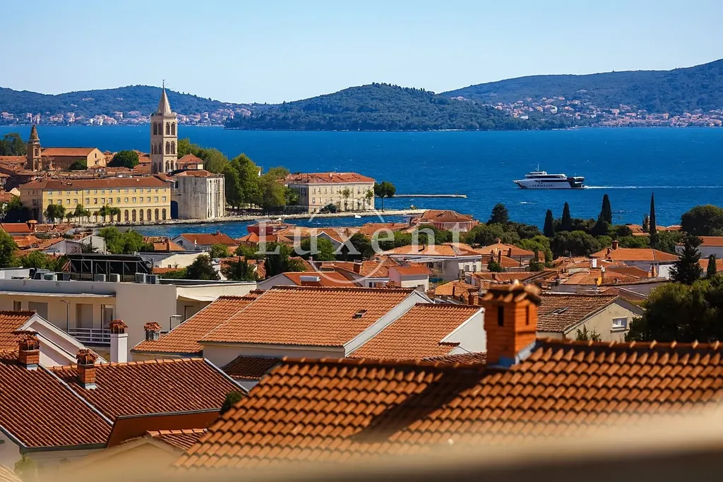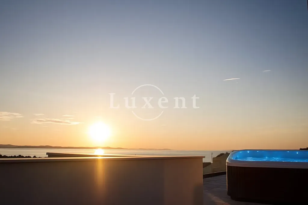 Unikátní výhodou je vnitřní schodiště, které vede na velkolepou střešní terasu o rozloze 93,50 m2. Tato terasa nabízí nádherný panoramatický výhled na moře a historické město Zadar. Součástí vybavení terasy je vířivka, ideální pro relaxaci.
