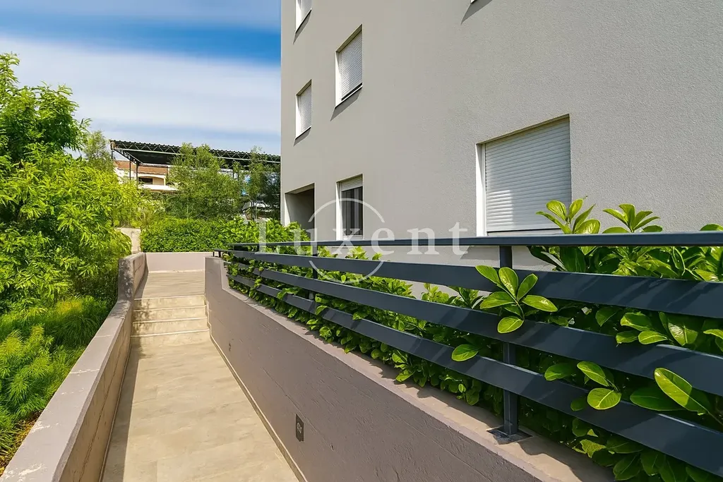 K bytu náleží také dvě venkovní parkovací místa a garáž o velikosti 20 m2. Moře je vzdáleno pouhých 800 metrů a v okolí naleznete veškerou občanskou vybavenost – restaurace, kavárny i obchody. Letiště Zadar je vzdálené 11 km.